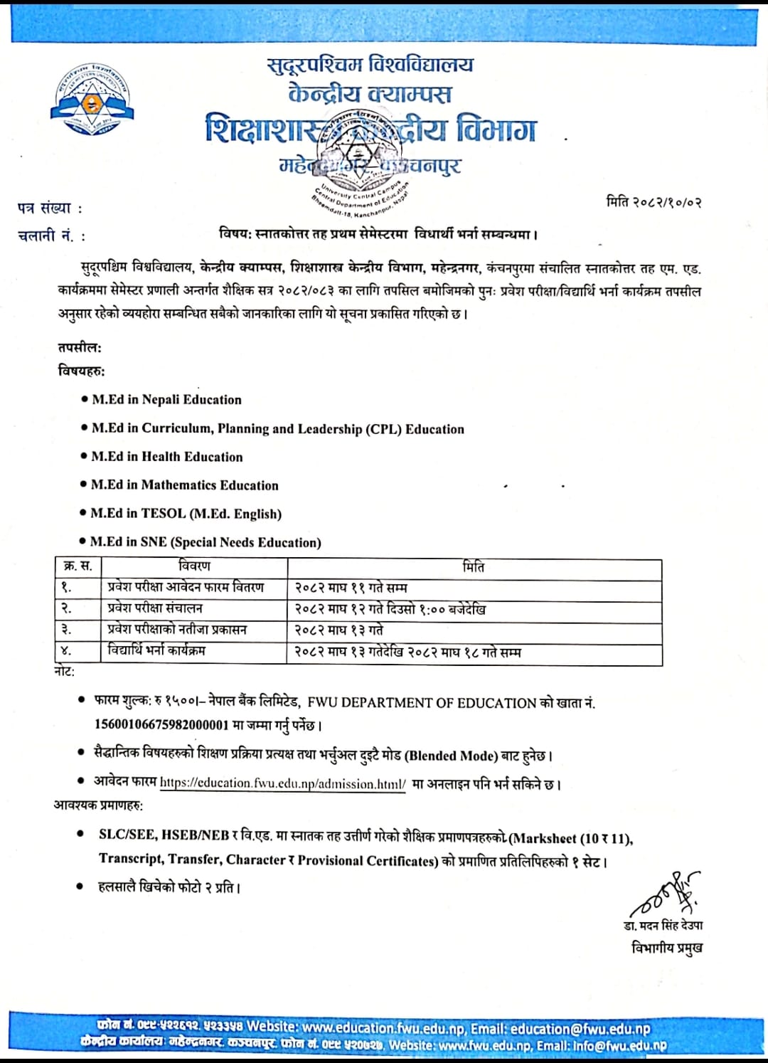 M. Ed. Admission 2082 Re-Entrance