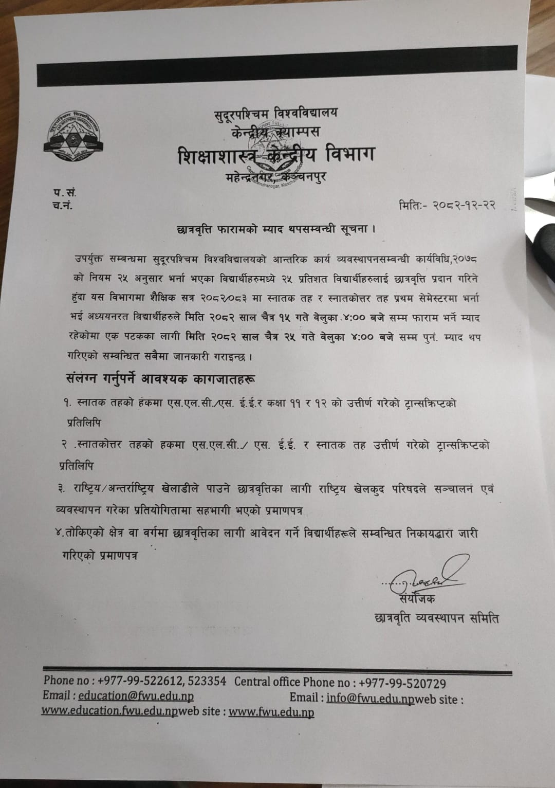 स्नातक ततहको छात्रवृती समबन्धी सूचना